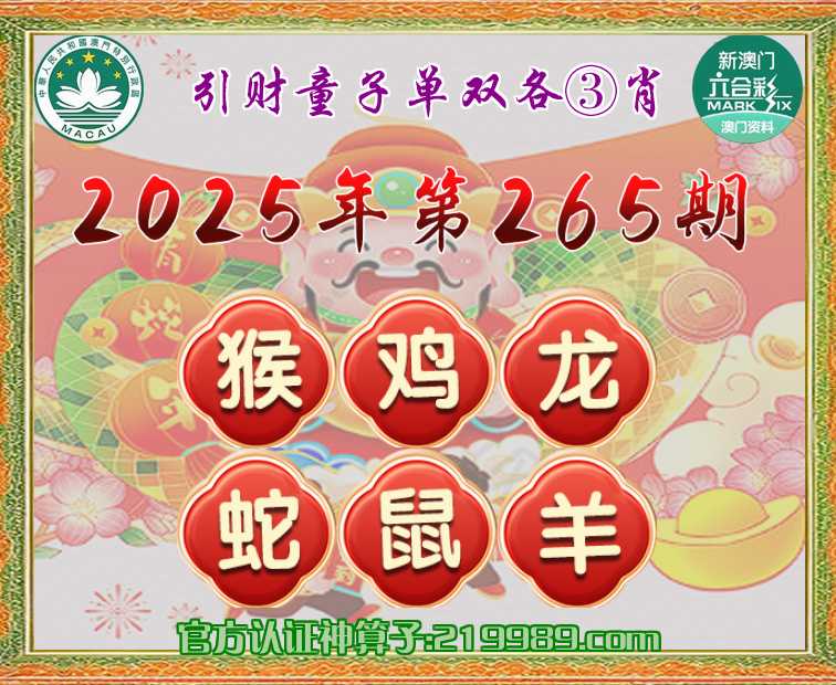 265期: 🏇『引财童子』 🏇单双各③肖🏇【.鸡.龙.蛇.鼠.羊】开:猴10