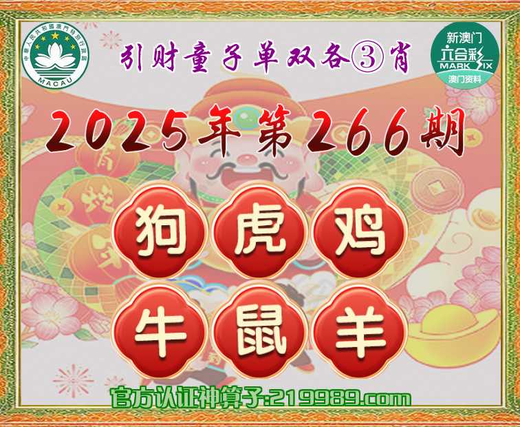 266期: 🏇『引财童子』 🏇单双各③肖🏇【狗.虎.鸡..鼠.羊】开:牛41