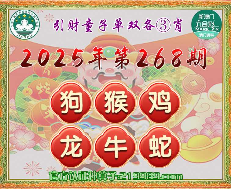268期: 🏇『引财童子』 🏇单双各③肖🏇【狗..鸡.龙.牛.蛇】开:猴10