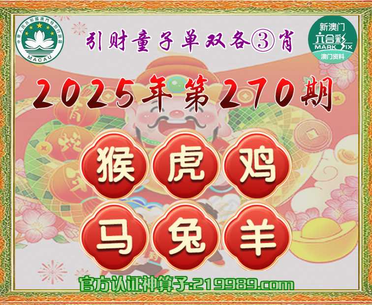 270期: 🏇『引财童子』 🏇单双各③肖🏇【猴.虎.鸡.马.兔.】开:羊35