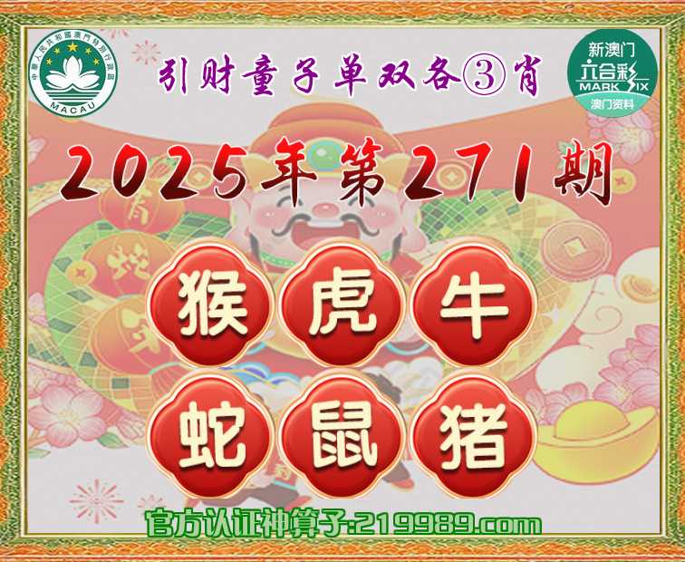 271期: 🏇『引财童子』 🏇单双各③肖🏇【猴.虎.牛.蛇..猪】开:鼠06