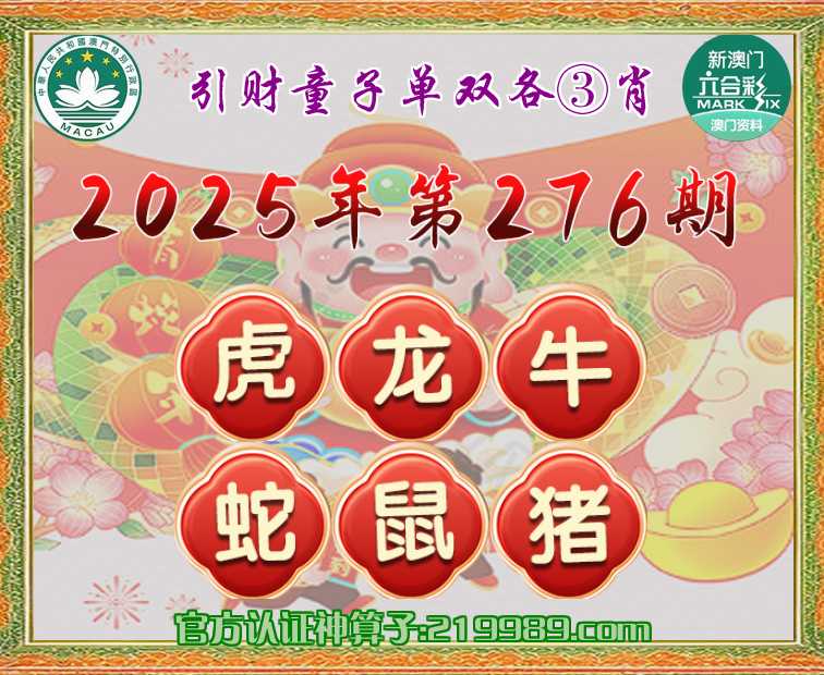 276期: 🏇『引财童子』 🏇单双各③肖🏇【虎.龙.牛.蛇.鼠.猪】开:鸡09
