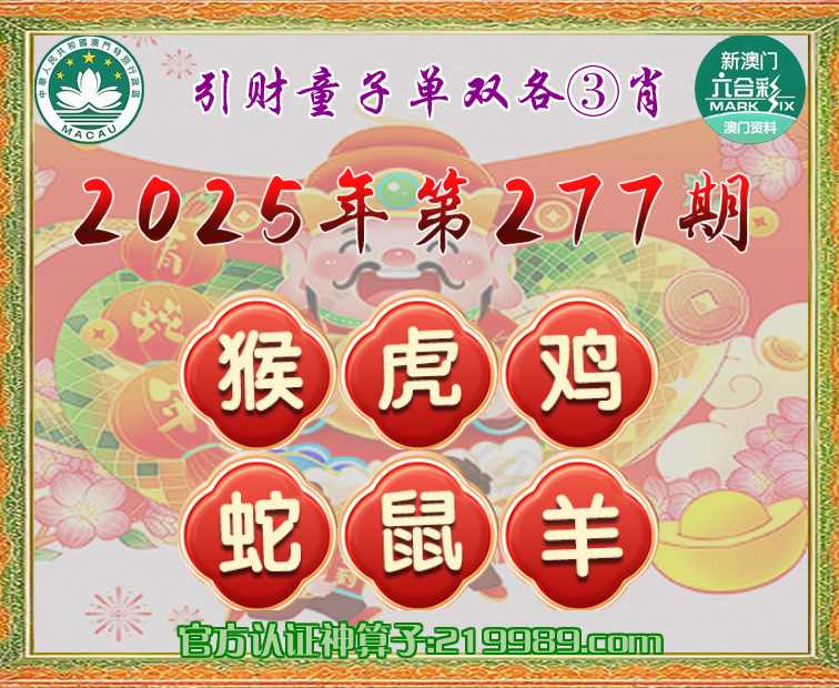 277期: 🏇『引财童子』 🏇单双各③肖🏇【猴..鸡.蛇.鼠.羊】开:虎16