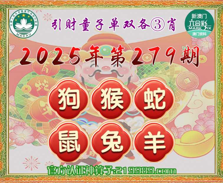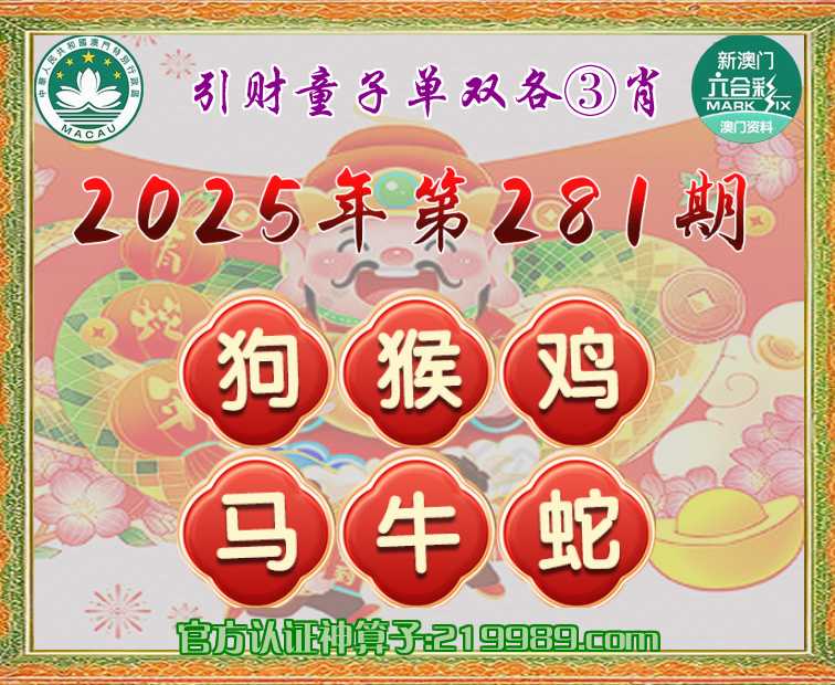 281期: 🏇『引财童子』 🏇单双各③肖🏇【狗.猴.鸡.马.牛.蛇】开:羊47