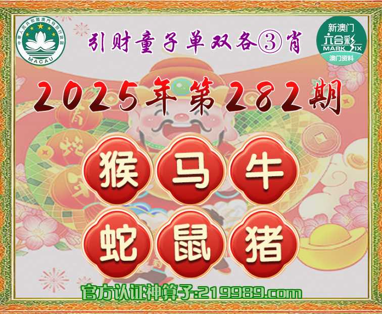 282期: 🏇『引财童子』 🏇单双各③肖🏇【猴.马.牛.蛇.鼠.猪】开:00准