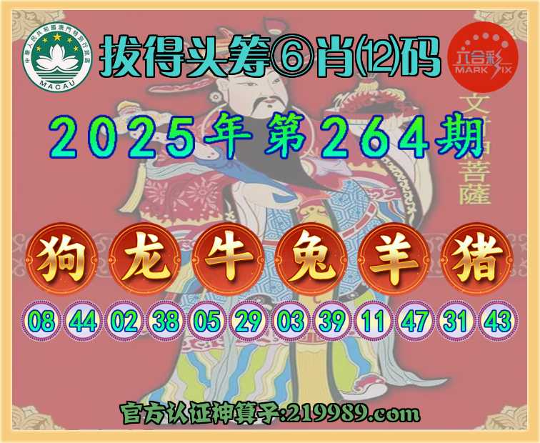 264期:『拔得头筹』 ⛩️⑥肖⑿码⛩️【狗龙牛兔羊】开:猪43