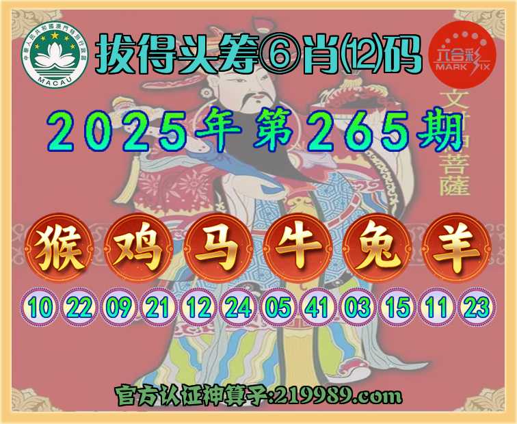 265期:『拔得头筹』 ⛩️⑥肖⑿码⛩️【鸡马牛兔羊】开:猴10