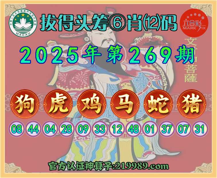 269期:『拔得头筹』 ⛩️⑥肖⑿码⛩️【狗虎鸡马蛇】开:猪31