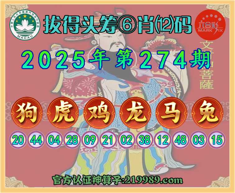 274期:『拔得头筹』 ⛩️⑥肖⑿码⛩️【虎鸡龙马兔】开:狗44