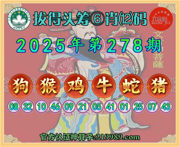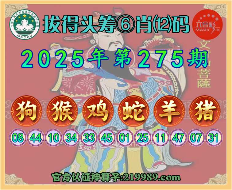 275期:『拔得头筹』 ⛩️⑥肖⑿码⛩️【狗猴蛇羊猪】开:鸡45