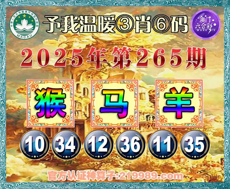265期: 🌅《予我温暖》 🌅③肖⑥码🌅【马羊】开:猴10