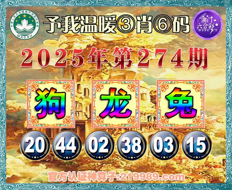 274期: 🌅《予我温暖》 🌅③肖⑥码🌅【龙兔】开:狗44