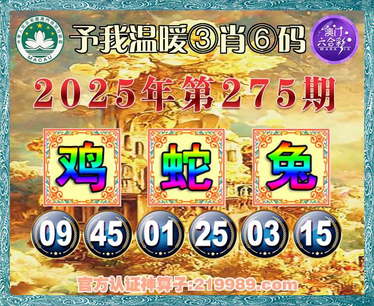 275期: 🌅《予我温暖》 🌅③肖⑥码🌅【蛇兔】开:鸡45