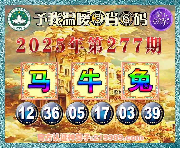 277期: 🌅《予我温暖》 🌅③肖⑥码🌅【马牛兔】开:虎16