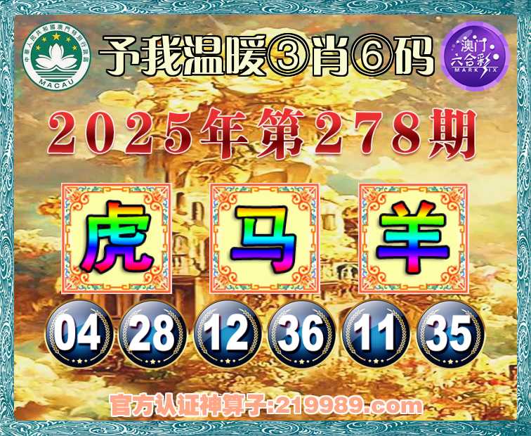 278期: 🌅《予我温暖》 🌅③肖⑥码🌅【马羊】开:虎28
