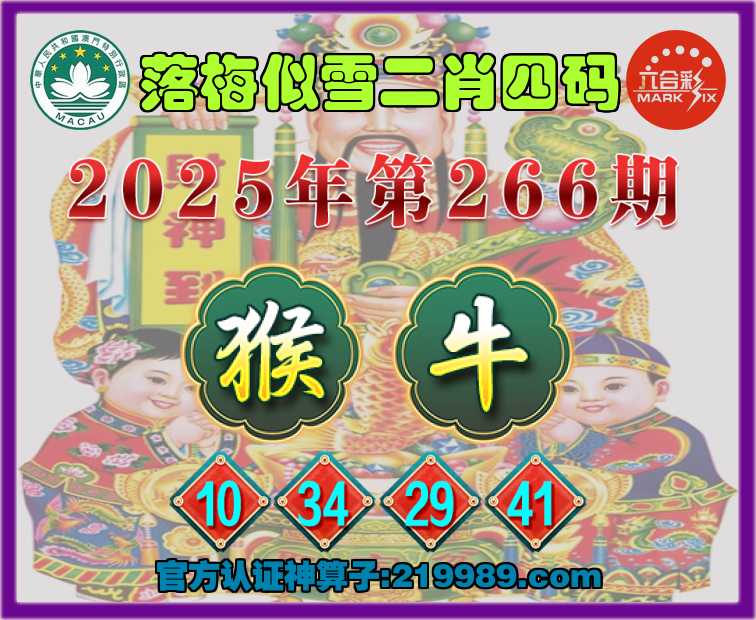 266期: 🍎《落梅似雪》 🍎二肖四码🍎【猴】【10.34.29.41】开:牛41