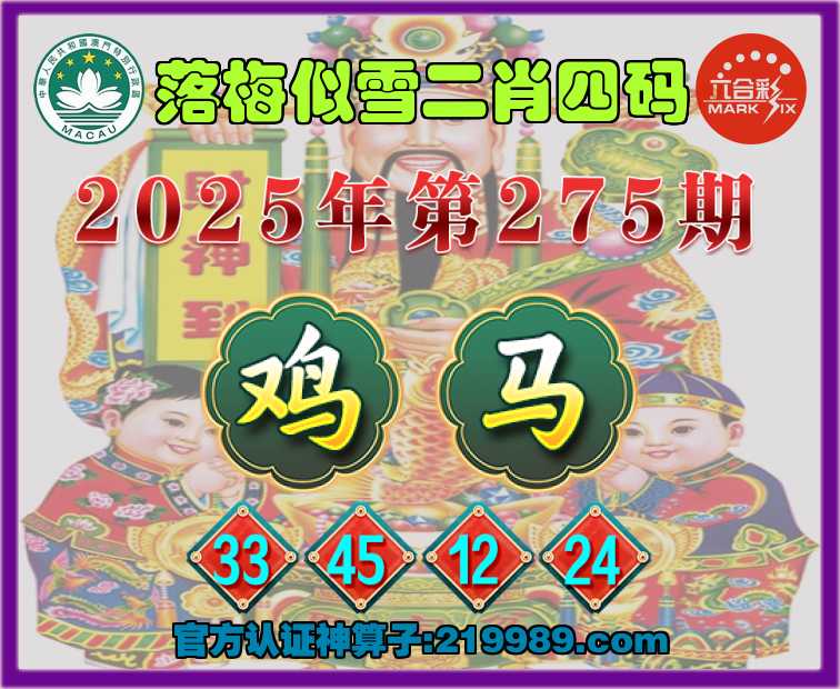 275期: 🍎《落梅似雪》 🍎二肖四码🍎【马】【33.45.12.24】开:鸡45