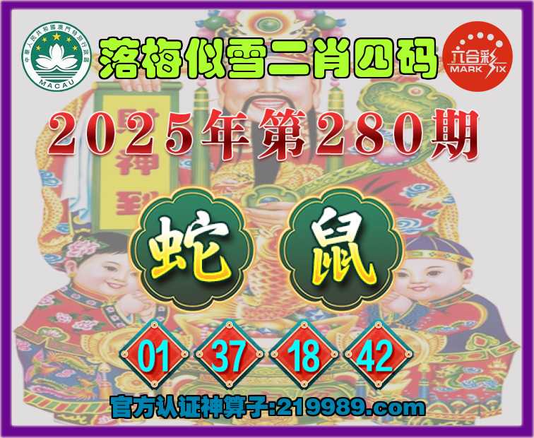 280期: 🍎《落梅似雪》 🍎二肖四码🍎【蛇】【01.37.18.42】开:鼠42