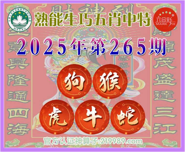 265期:【熟能生巧】 👑五肖中特👑【狗..虎.牛.蛇】开:猴10
