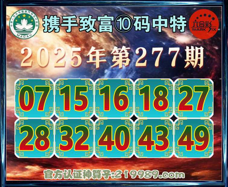 277期:『携手致富』 📙⑩码中特📙开:16