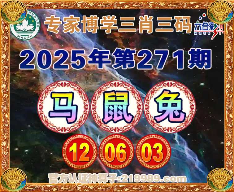 271期: 🏆『专家博学』 🏆三肖三码🏆【马兔】【12.06.03】开:鼠06