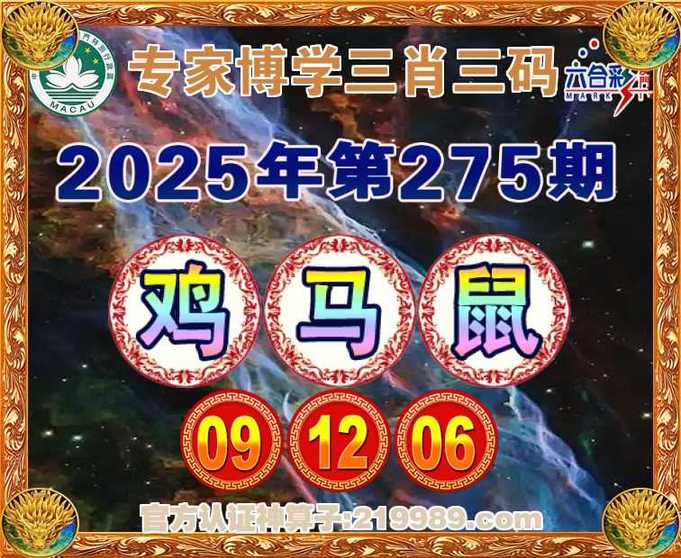 275期: 🏆『专家博学』 🏆三肖三码🏆【马鼠】【09.12.06】开:鸡45