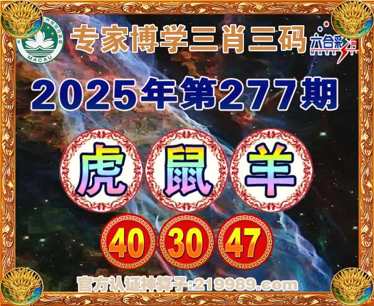277期: 🏆『专家博学』 🏆三肖三码🏆【鼠羊】【40.30.47】开:虎16