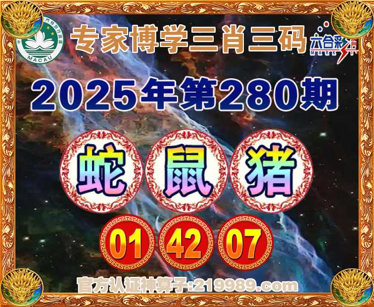 280期: 🏆『专家博学』 🏆三肖三码🏆【蛇猪】【01.42.07】开:鼠42