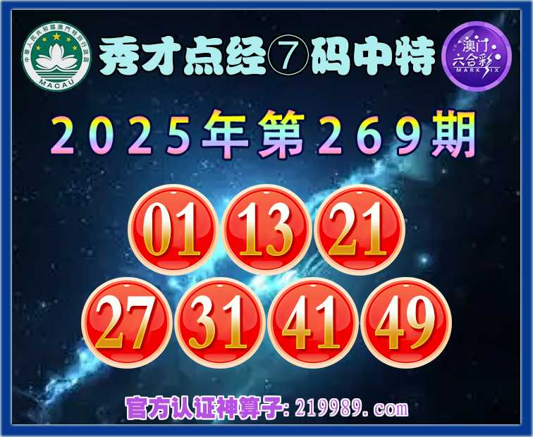 269期:【秀才点经】 🧧⑦码中特🧧【01.13.21.27.31.41.49】开:31