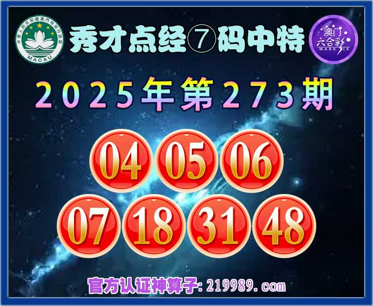 273期:【秀才点经】 🧧⑦码中特🧧【04.05.06.07.18.31.48】开:04