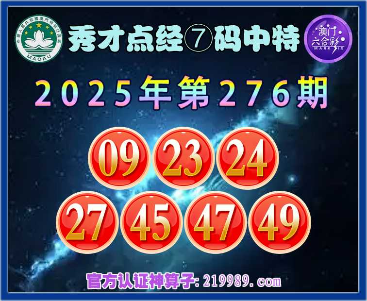 276期:【秀才点经】 🧧⑦码中特🧧【09.23.24.27.45.47.49】开:09