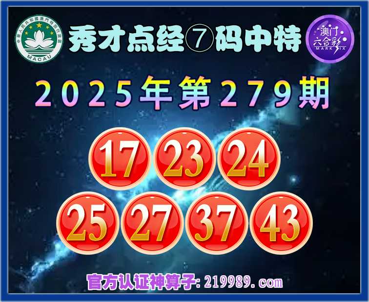279期:【秀才点经】 🧧⑦码中特🧧【17.23.24.25.27.37.43】开:27