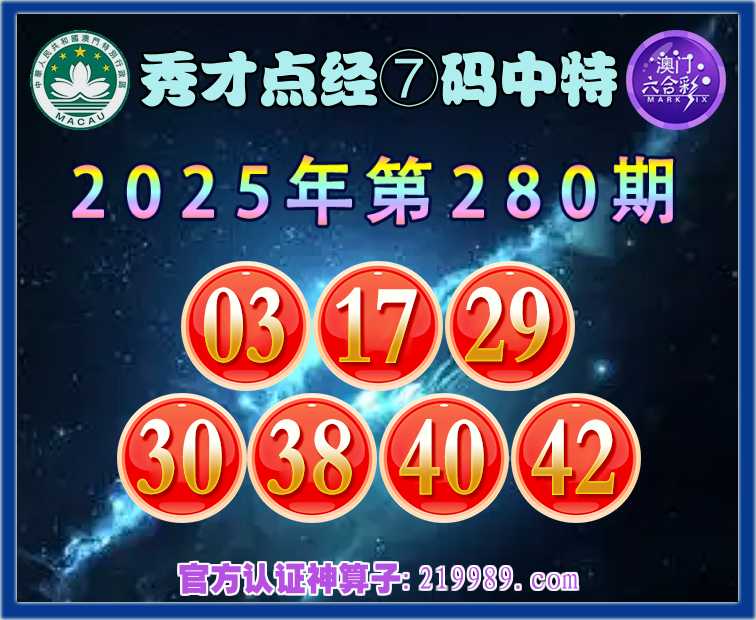 280期:【秀才点经】 🧧⑦码中特🧧【03.17.29.30.38.40.42】开:42