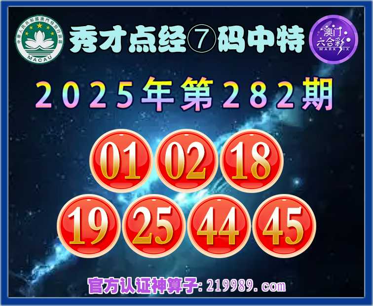282期:【秀才点经】 🧧⑦码中特🧧【01.02.18.19.25.44.45】开:00准